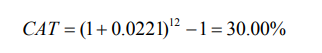 La fórmula de cálculo del CAT queda ilustrada mediante el siguiente ejemplo: