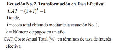 Transformación del Costo Total(CAT) en Tasa Efectiva Anual: